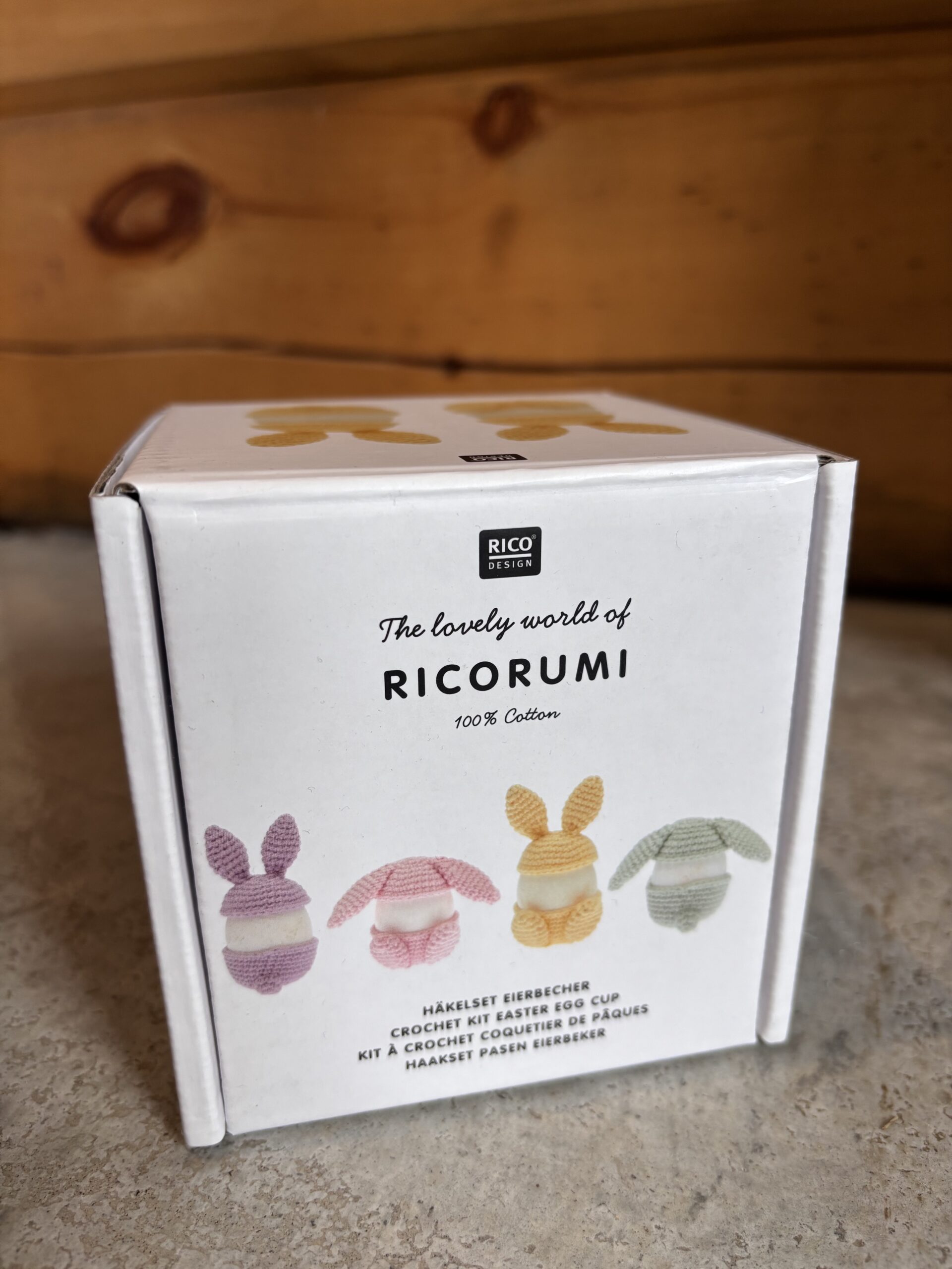 The Ricorumi Easter Egg Cup Crochet Kit contains everything you need to make at least 4 Easter Egg Cups: detailed instructions, Ricorumi DK yarn, an embroidery needle and crochet hook are included. Crochet kits are now packed in a high-quality cardboard box and are plastic-free! The instructions include two different sets of ears plus the bottom part, for more variety!